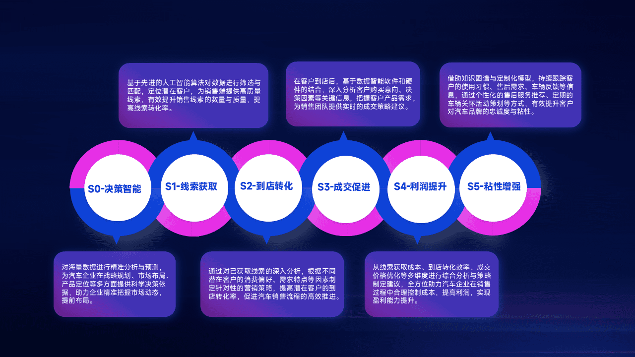 通过拓宽潜在客户来源、、、优化线索分配并提高到店转化率,,,以增强销售效率。。。。同时,,,利用线索数据不断优化分析模型,,,有效提升转化率,,,扩大营销影响力。。